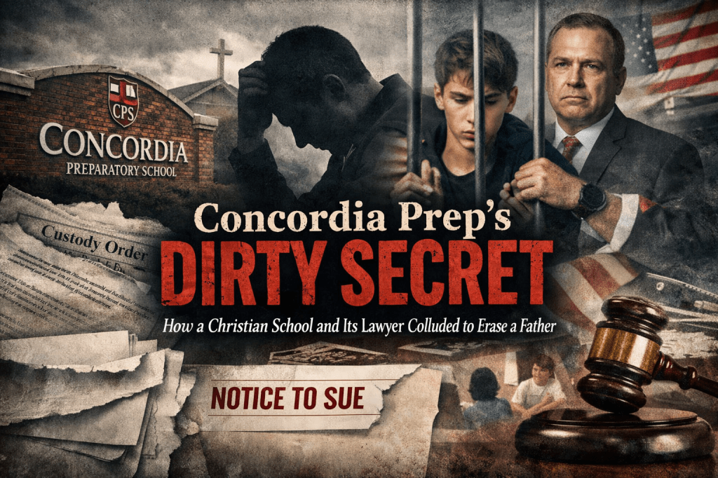 Behind the glossy brochures and football games lies a darker truth: Concordia actively colluded with a vindictive mother to erase a father from his son’s life. Alongside its attorney, Andrew M. Croll, the school selectively enforced orders, trafficked in privileged information, silenced a child’s voice, and even used coaches as muscle.
