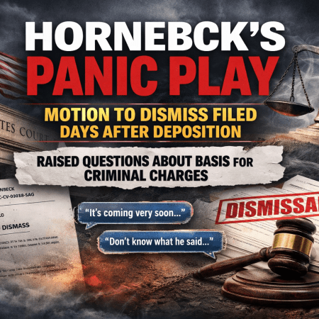 March 9, 2026March 19, 2026 Michael Phillips Hornbeck’s Panic Play: Motion to Dismiss Filed Days After Deposition Raised Questions About Basis for Criminal Charges